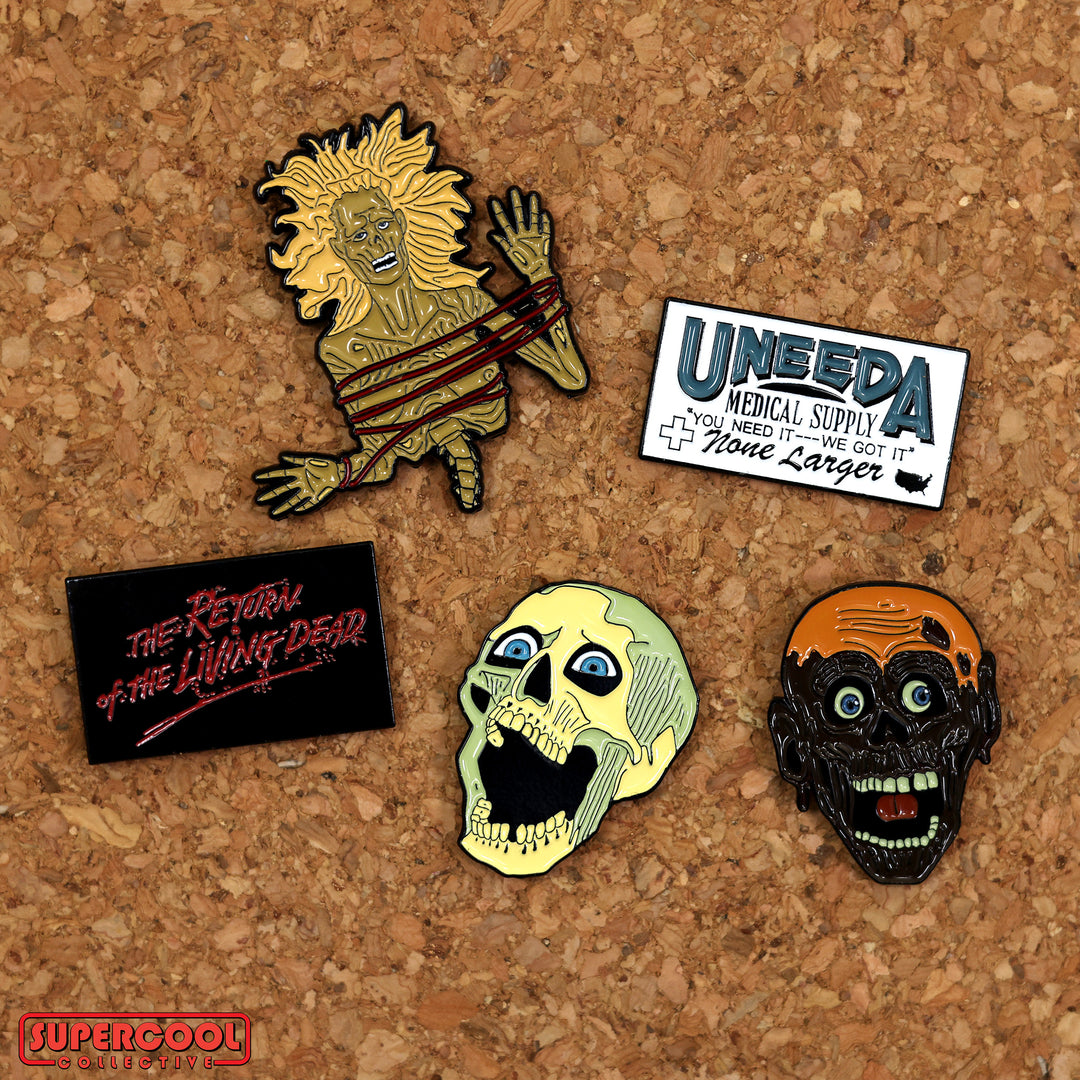 Show off your need for more brains with thisThe Return of the Living Dead enamel pin set featuring some fan favorite characters and props from the film!